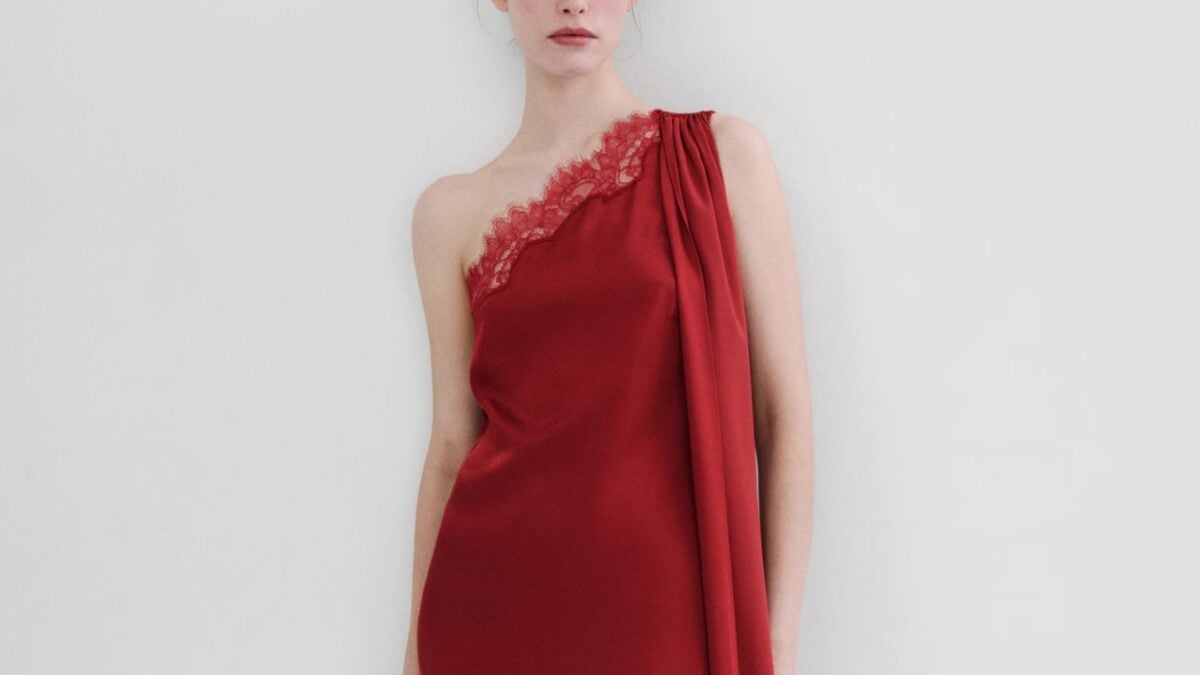 Essenziale ma al tempo stesso raffinato, questo abito firmato Mango dimostra come anche un design minimal possa risultare estremamente elegante. Il tessuto satinato dona luminosità al capo, mentre lo scollo monospalla impreziosito da profili in pizzo tono su tono crea un effetto sofisticato e sensuale. Il foulard rosso da avvolgere attorno al collo o lasciar scivolare sulle spalle aggiunge un tocco scenografico e molto chic. La linea asimmetrica rende il modello moderno e particolarmente versatile. Per completare il look in modo impeccabile basta abbinarlo a un blazer oversize e a un paio di slingback eleganti.