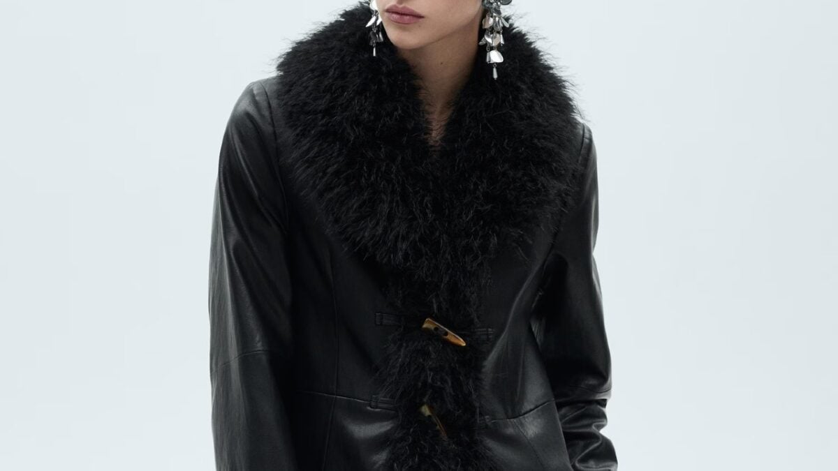 Mango punta su una sofisticata lettura rétro del Penny Lane coat: ecopelle strutturata, fodera in shearling e un taglio midi dal design dritto che esalta le proporzioni. Il collo a revers e lo scollo a V evocano immediatamente lo spirito degli anni ’70, mentre la chiusura con alamari marroni aggiunge un richiamo sartoriale ai capispalla vintage. Il risultato è un cappotto dall’allure caldo e senza tempo, perfetto per abbinamenti essenziali o denim consumati.