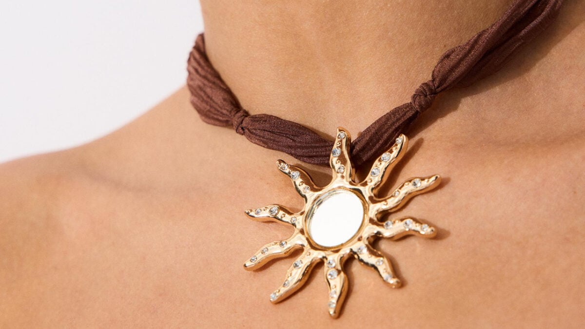 - Collana in tessuto a specchio con sole, Stradivarius; versatile e glam